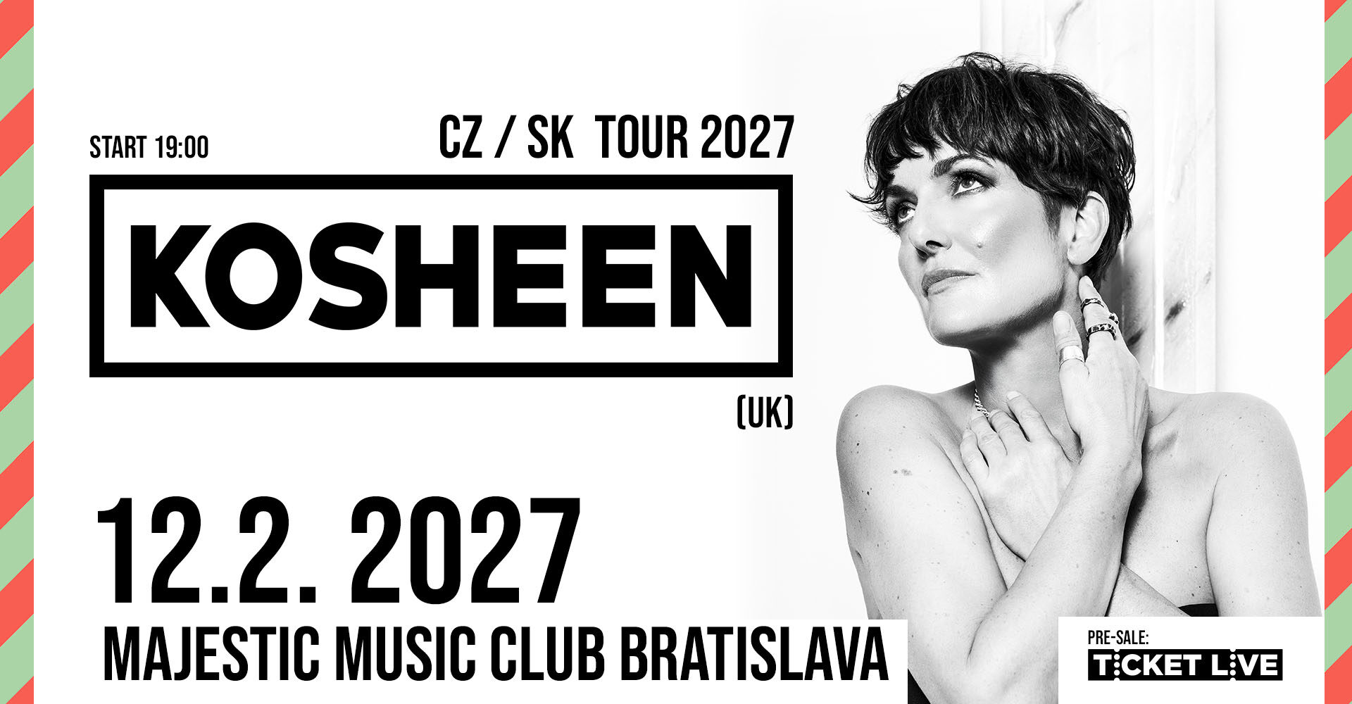 Bratislava sa začiatkom roka 2027 stane dejiskom výnimočného koncertného návratu. Britská elektronická formácia Kosheen, ktorá patrí medzi rešpektované mená európskej elektronickej scény, vystúpi v hlavnom meste v rámci exkluzívneho klubového turné po Česku a Slovensku. Kosheen sa predstavia 12. februára 2027 v bratislavskom klube Majestic Music Club. Pôjde o jedinú slovenskú zastávku pripravovaného CZ/SK turné, ktoré zavíta aj do českých miest Liberec, Plzeň a Ostrava.