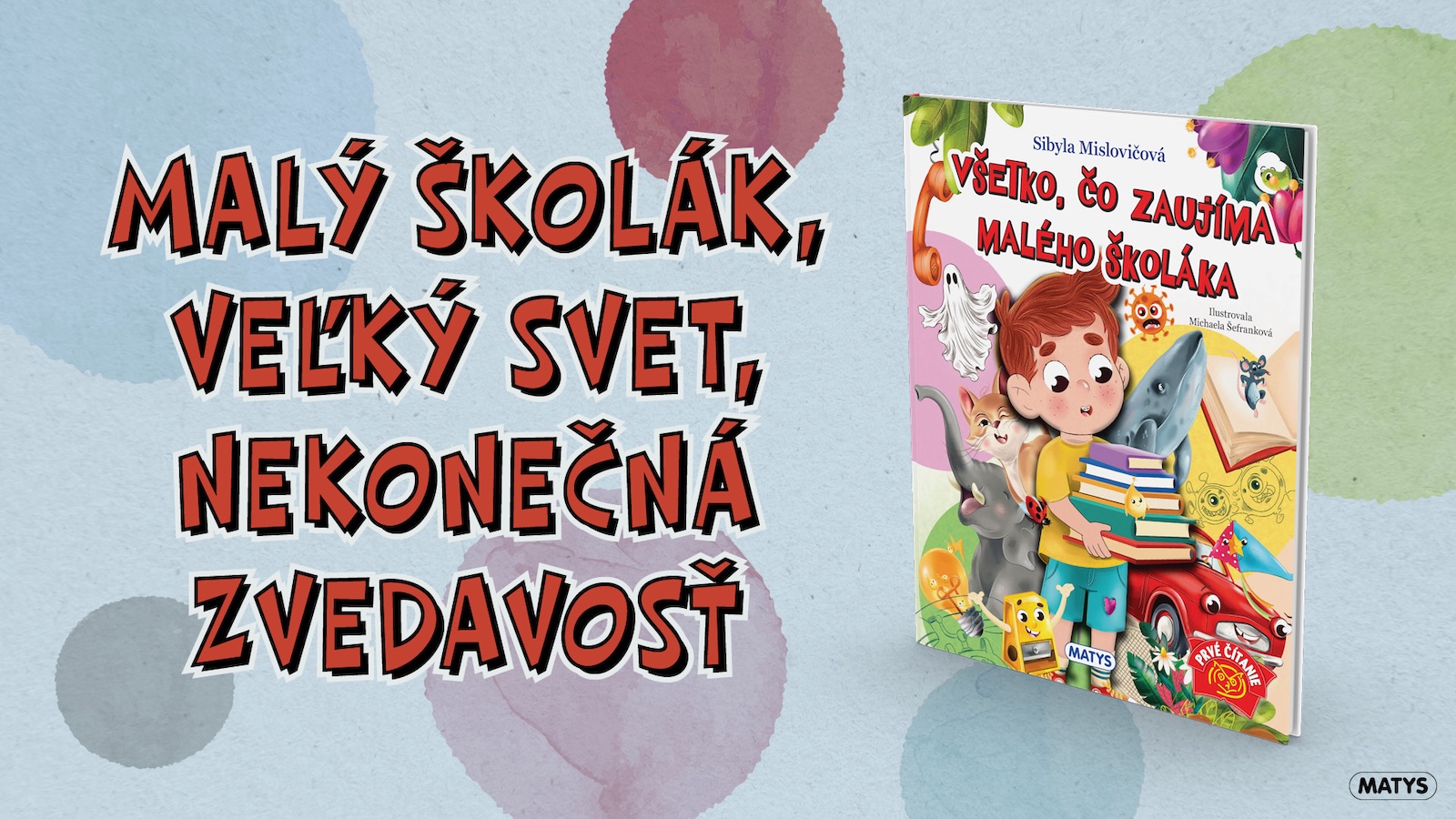 Čo by mohlo zaujímať malého školáka? Ak chodí s otvorenými očami, tak asi všetko… Stačí, aby bol pozorný a aby dokázal vnímať svet, ktorý ho obklopuje. Práve na túto tému napísala Sibyla Mislovičová knižku Všetko, čo zaujíma malého školáka, ktorá práve vychádza vo vydavateľstve Matys. Tak majte oči otvorené, sledujte svet okolo seba a začítajte sa. Určite sa to oplatí!